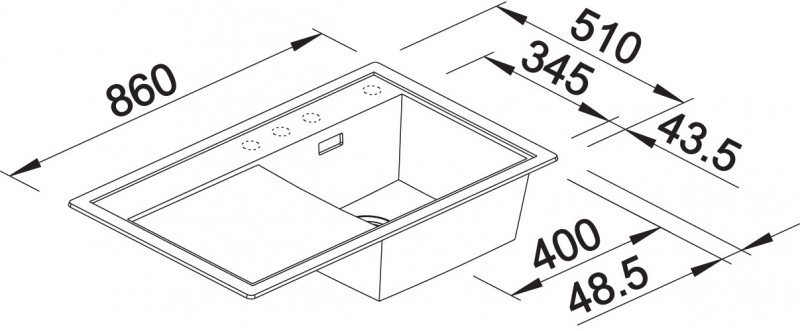 Схема встраивания 3 для мойки Blanco ZENAR 45S чаша слева, доска стекло клапан-автомат InFino Кофе [Гранит] Гранит 523838
