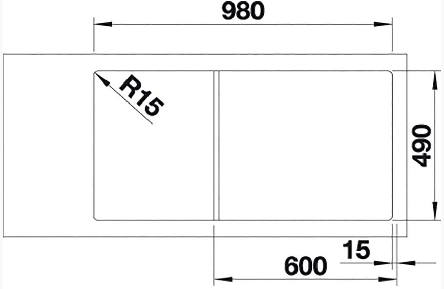 Схема встраивания 4 для мойки Blanco AXIA III 6 S чаша справа, доска стекло клапан-автомат InFino® Серый беж [Гранит] Гранит 523480