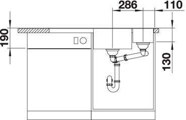 Схема встраивания 2 для мойки Blanco AXIA III 6 S чаша справа, доска стекло клапан-автомат InFino® Кофе [Гранит] Гранит 523482