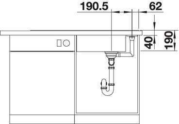 Схема встраивания 3 для мойки Blanco AXIA III XL 6 S доска ясень клапан-автомат InFino® Кофе [Гранит] Гранит 523509