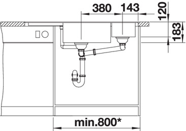 Схема встраивания 3 для мойки Blanco DELTA II-F SILGRANIT клапан-автомат InFino® Черный [Гранит] 525868