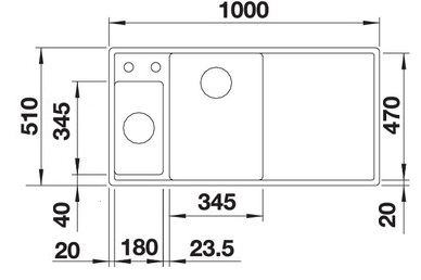 Схема встраивания 1 для мойки Blanco AXIA III 6 S чаша слева, разделочный столик ясень клапан-автомат InFino® Черный [Гранит] Гранит 525849