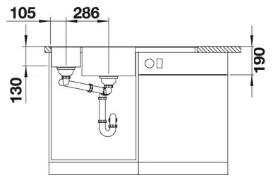Схема встраивания 3 для мойки Blanco AXIA III 6 S-F чаша слева, доска ясень клапан-автомат InFino® Черный [Гранит] Гранит 525853