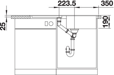 Схема встраивания 3 для мойки Blanco YOVA XL 6S SILGRANIT клапан-автомат InFino® Серый беж [Гранит] Гранит 523602