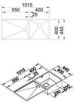 Схема встраиваня для мойки Blanco Zerox 400/550-T-IF/N чаша справа Нержавеющая сталь зеркальная полировка [Нержавеющая сталь] Нержавеющая сталь 521604