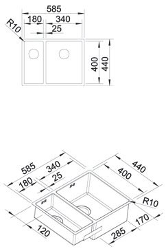 Схема встраивания для мойки Blanco Claron 340/180-IF/N чаша справа Нержавеющая сталь зеркальная полировка [Нержавеющая сталь] Нержавеющая сталь 521608