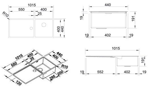 Схема встраивания для мойки Blanco Claron 400/550-T-IF/N чаша справа Нержавеющая сталь зеркальная полировка [Нержавеющая сталь] Нержавеющая сталь 521600