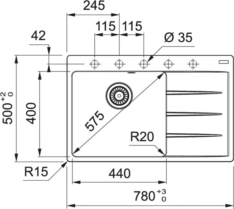 Схема встраивания 1 для мойки Franke CNG 611/211-78 TL чаша слева оникс