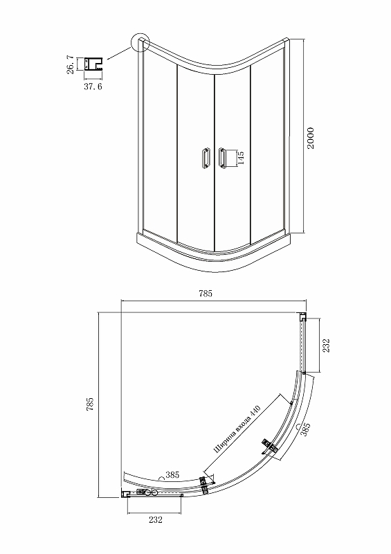 Схема встраивания для душевого ограждения Ambassador 14011206
