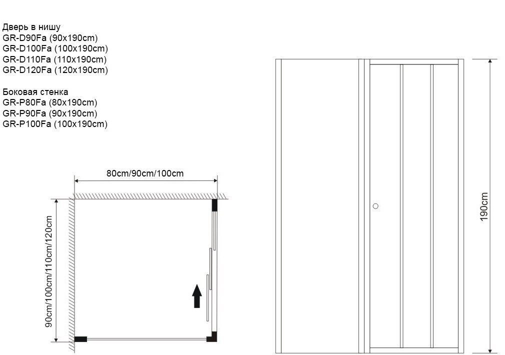 Схема встраивания для душевого ограждения Grossman Falcon GR-D120-P90