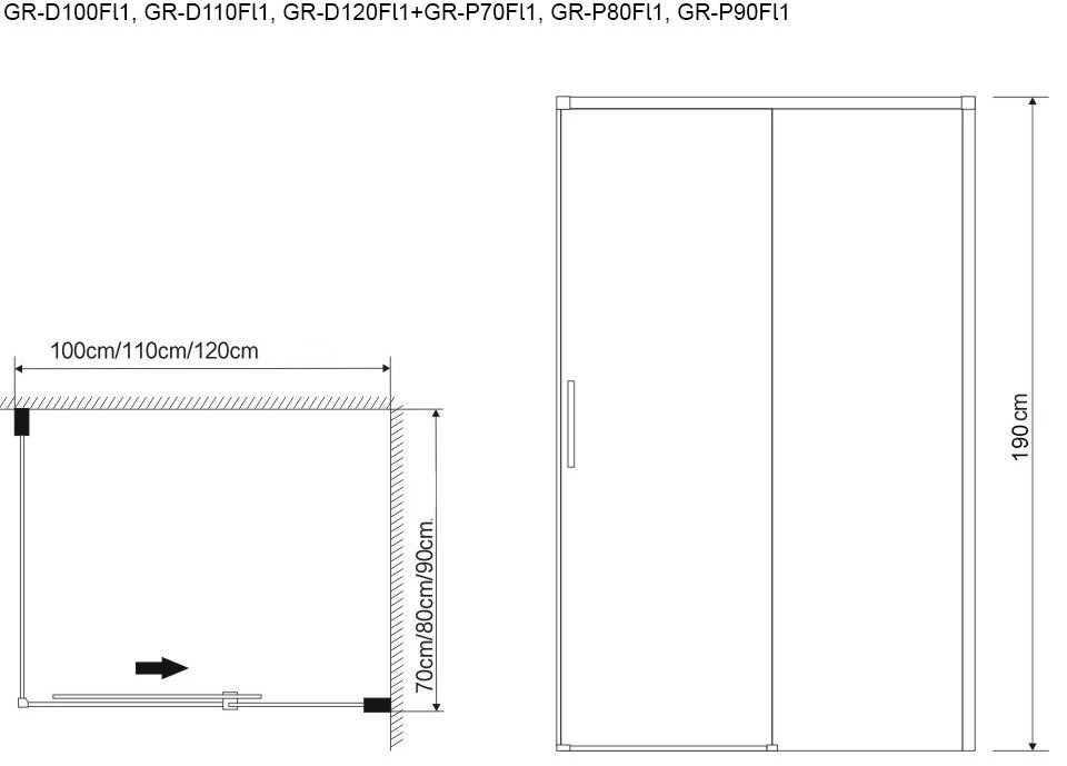 Схема встраивания для душевого ограждения Grossman Fly 1 GR-D100-P90