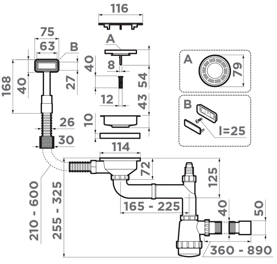 Арматура для одночашевых моек с прямоугольным переливом WK-1C IN