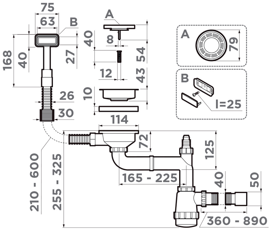 Арматура для одночашевых моек с декоративной решеткой WK-1 IN