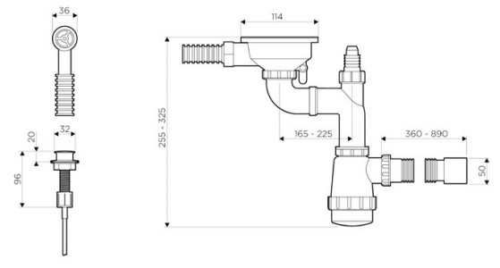 Арматура для одночашевых моек с круглым переливом и клапаном-автоматом WK-1-R-A IN