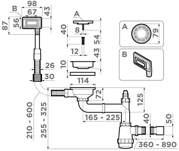 Арматура для моек с универсальным прямоугольным переливом WK-1-UN IN